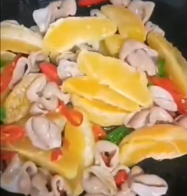 今天我们主要来介绍 一下赣南脐橙的新吃法,赣南脐橙炒猪大肠。酸菜炒猪大肠是典型的客家招牌菜。通常都是选用客家人自已腌制的酸菜,比如酸白萝卜,酸辣椒,酸菜梗等做配菜,而选用新鲜的猪大肠作为主料。
